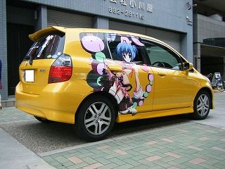 リアガラスにチーム名のカッティングと