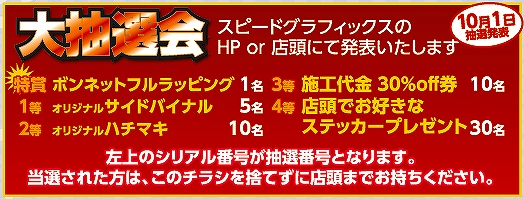 ボンネットフルラッピングなど様々な特典が当たっちゃいます。