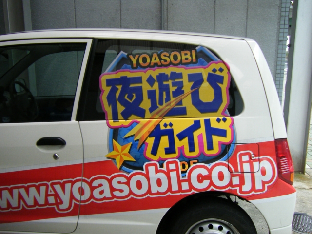 カッティングで店舗名・営業時間を配置致しました。